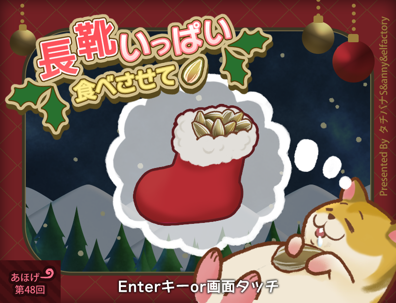 ピッタリプレゼントしよう! ■ゲーム紹介長靴にヒマワリの種を投入しよう!ほしい分ピッタリの量をプレゼントできるかな?ハムスターがちょっとずつ食べちゃうから注意!1ゲーム:30秒程度